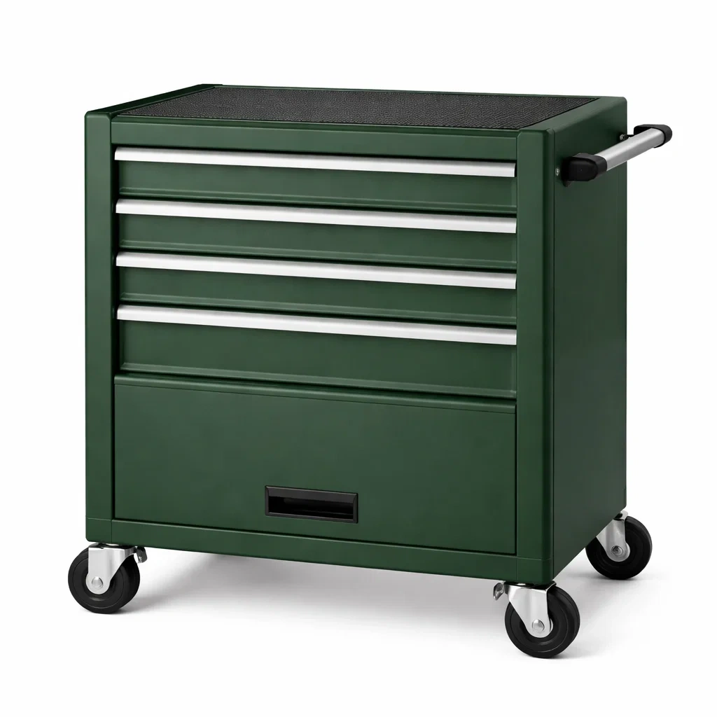 Chariot à outils en acier vert avec 5 tiroirs et roulettes