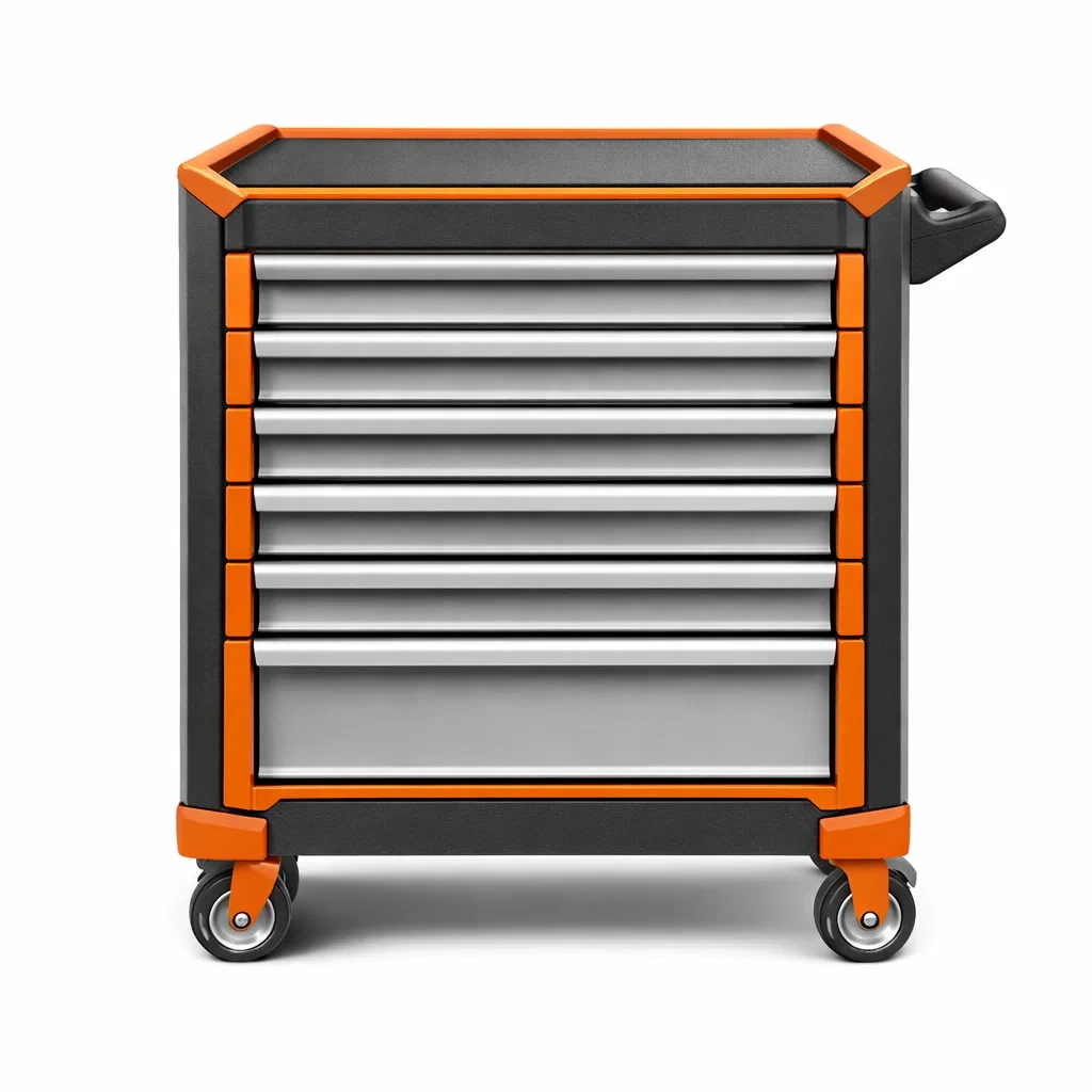 Chariot à outils en métal avec 6 tiroirs orange et bleu