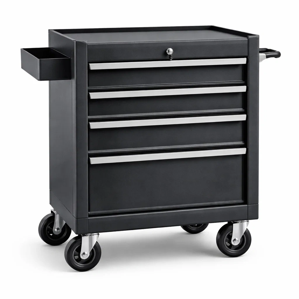 Il est équipé de quatre tiroirs, chacun supportant jusqu'à 45 kg. Les roues sont en caoutchouc et pivotantes pour une mobilité aisée. Le système de verrouillage est une serrure à clé.